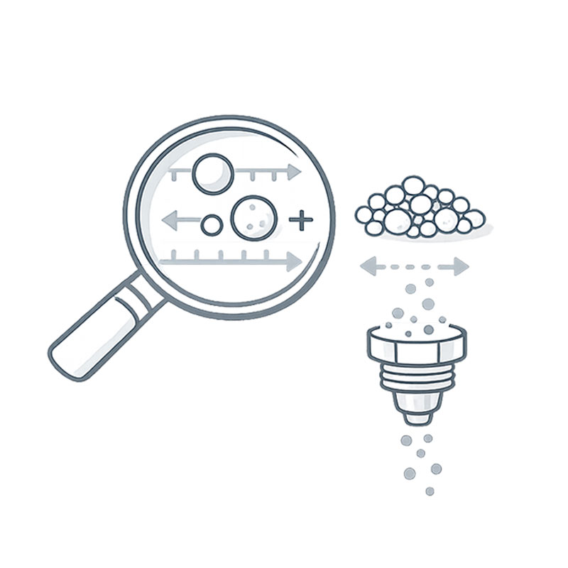 Supports powders from 40 nm to 25 µm, with even larger particles possible via adjusted nozzles.